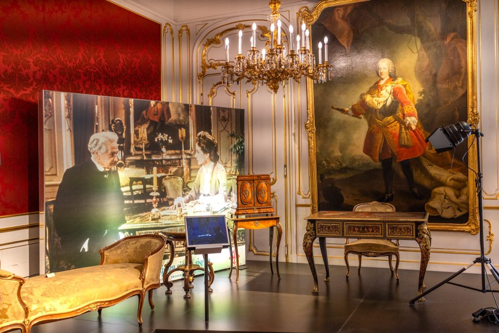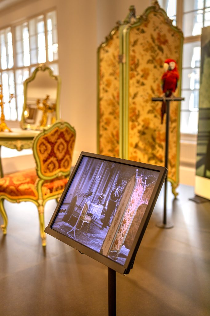 Neben den Möbelstücken werden auch kurze Filmausschnitte gezeigt, um zu sehen, wie die Möbel im Film verwendet wurden. Dazu gibt es auch einen witzigen Fun-Fact: Dem Regisseur Ernst Marischka war zwar die Ausstattung extrem wichtig, historische Genauigkeit hat für ihn aber kaum eine Rolle gespielt. Zum Beispiel tauchten plötzlich Leuchter aus der Wiener Hofburg in einem Mailänder Salon auf und der Schreibtisch von Erzherzogin Sophie stand im Film im Mädchenzimmer von Elisabeth (aus der Audioguide Sis(s)i-Tour).