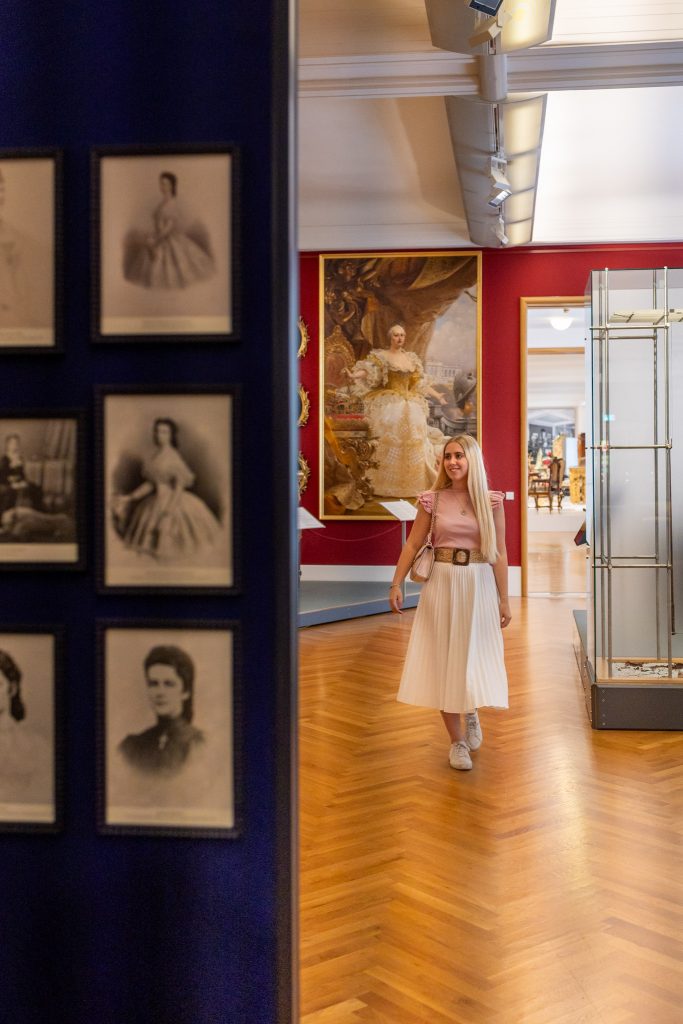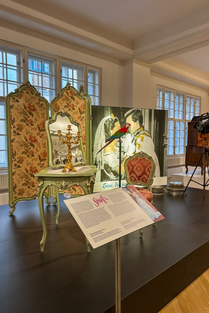 Richtig einzigartig fand ich, dass die berühmten „Sissi“-Filme mit Romy Schneider anhand von Möbeln, Fotos und Filmplakaten hier thematisiert werden. Der Grund dafür ist spannend: An den Originalschauplätzen durfte damals nicht gedreht werden, also wurden die Szenen in Studios nachgebaut, mit echten Möbeln der Habsburger aus dem Hofmobiliendepot.