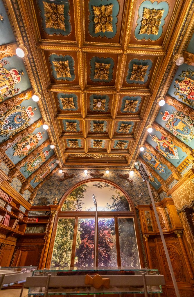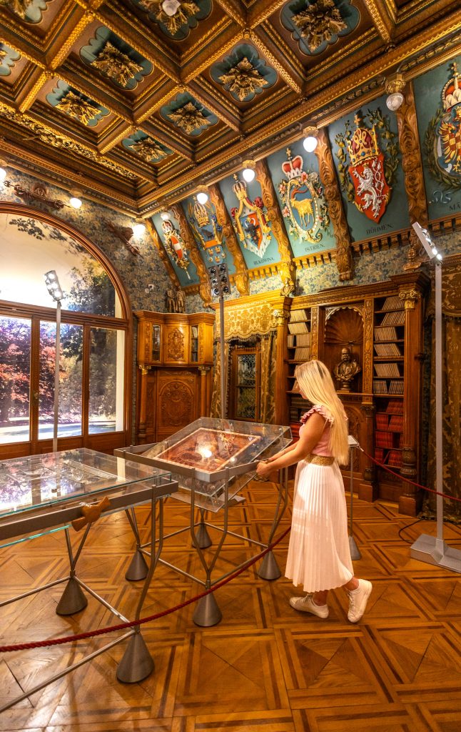 Besonders eindrucksvoll ist der „Wappensaal“, eigentlich eine Bibliothek, die sehr prunkvoll gestaltet ist. Du findest ihn nach der wachsenden Sammlung im zweiten Obergeschoss, die Treppe links hinunter.