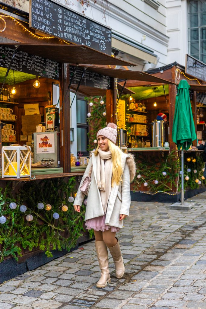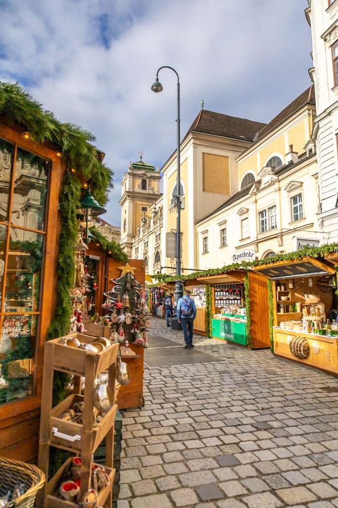 Natürlich, die großen und bekannten Weihnachtsmärkte sind beeindruckend. Aber gerade die kleineren Märkte haben oft einen ganz besonderen Charme. Mein Favorit: der Altwiener Christkindlmarkt auf der Freyung. Ein sehr kleiner, aber schöner und traditioneller Weihnachtsmarkt in der Wiener Innenstadt, der perfekt ist, um in die festliche Stimmung einzutauchen.