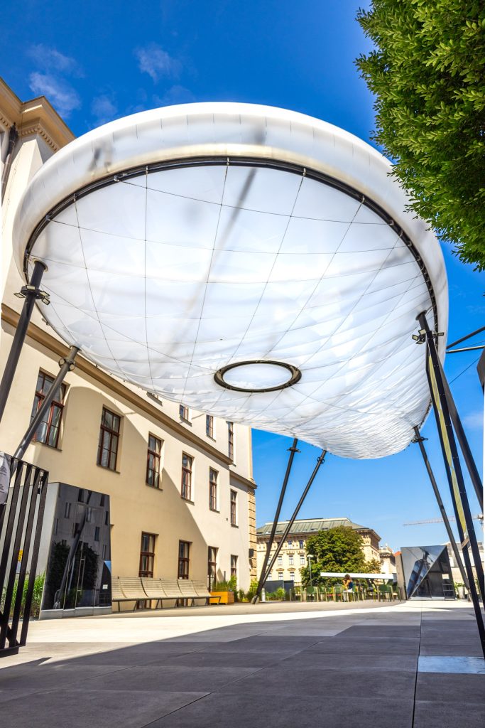 Tipp 2: Direkt vor dem Museum gibt es eine Terrasse mit einem Kiosk (Moko Kafe) und Sitzmöglichkeiten, das Highlight ist aber die riesige Kunstinstallation „The Cloud“.