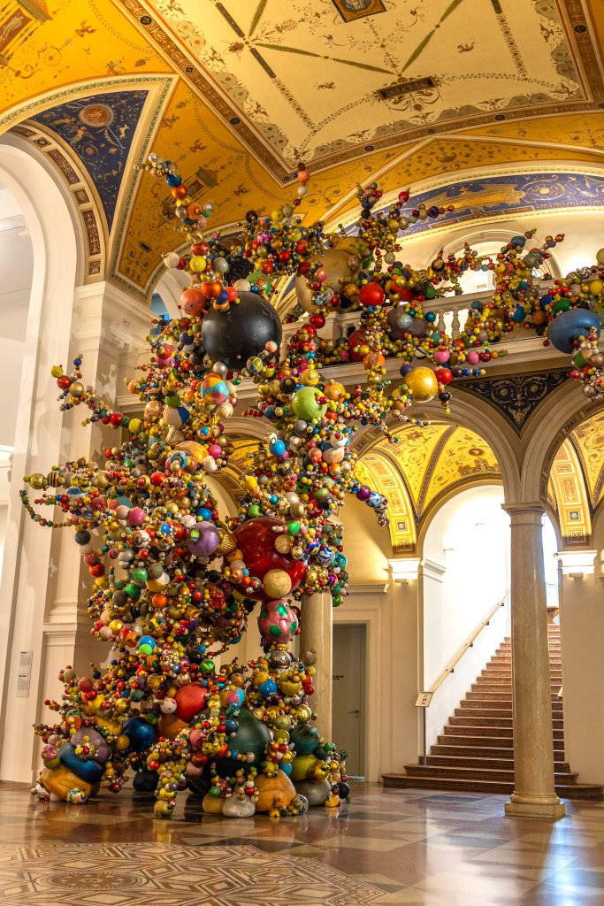 Besonders begeistert hat mich das Kunstwerk des bekannten tschechischen Künstlers Krištof Kintera in der großen Halle. Schau genau hin, kannst du erraten, woraus es gemacht ist?