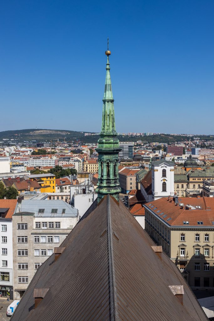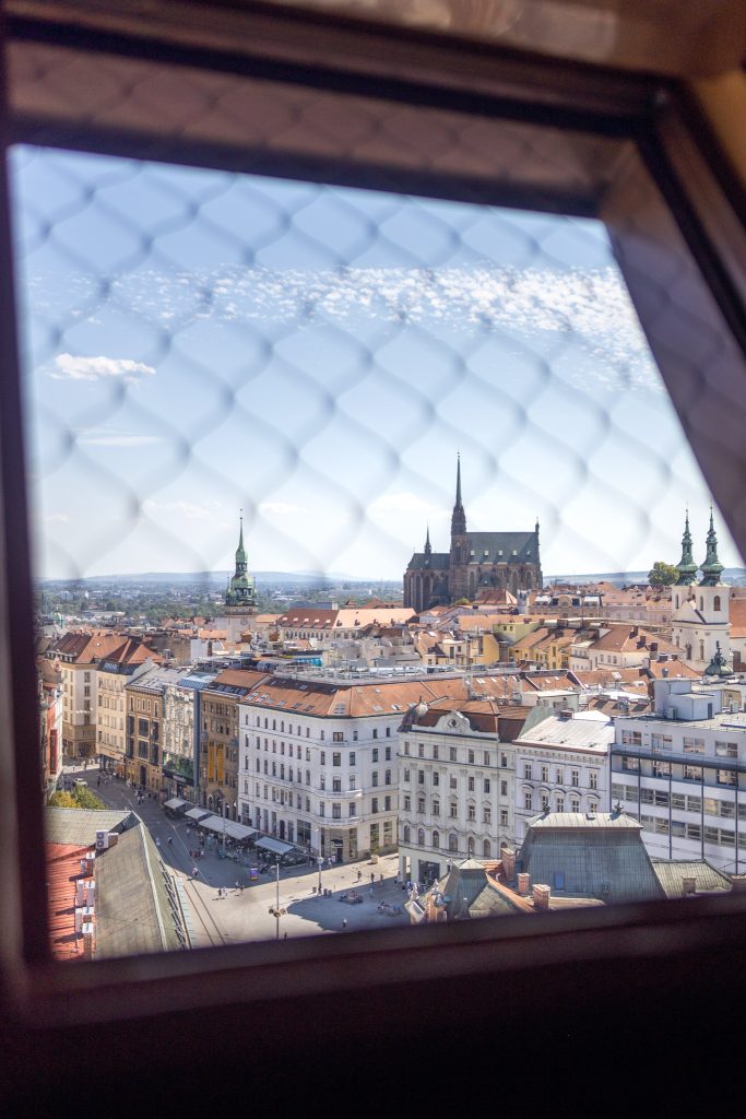 Im BRNOPAS ist der Besuch von einem von vier Erlebnissen enthalten (Chapel of the Crosses, Museum, Treasures, Lookout Tower & Royal Chapel) und ich habe mich – wie könnte es anders sein – für den Aussichtsturm entschieden (120 CZK/~4,80 € ohne Pass). Über eine steile, schmale Treppe gelangst du zuerst auf eine Aussichtsplattform im Freien, danach ein paar Stufen höher bis ganz nach oben. Von vier Fenstern aus hast du einen traumhaften Rundumblick über Brünn. Im Ticket inkludiert ist auch die Royal Chapel, die auch wirklich sehenswert ist.