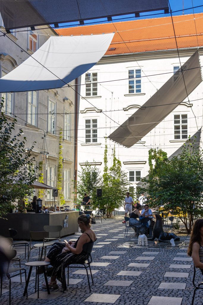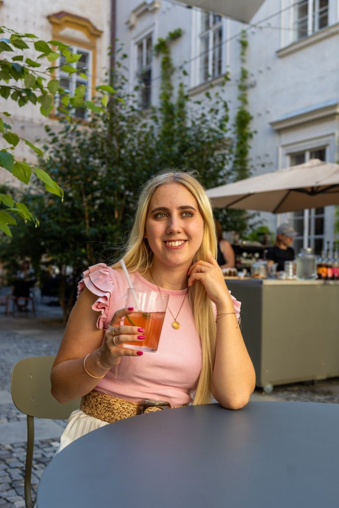 Nach so viel Stiegensteigen brauchten wir eine Pause und deshalb ging es ein paar Meter weiter zum Mährischen Platz. Dort versteckt im wunderschönen Innenhof der Mährischen Galerie (Stadthalterpalast) liegt das Café Typika Coffee. Ein richtig toller Ort und ein Hotspot der BrünnerInnen. Der Strawberry Iced Matcha Latte war ein Traum!