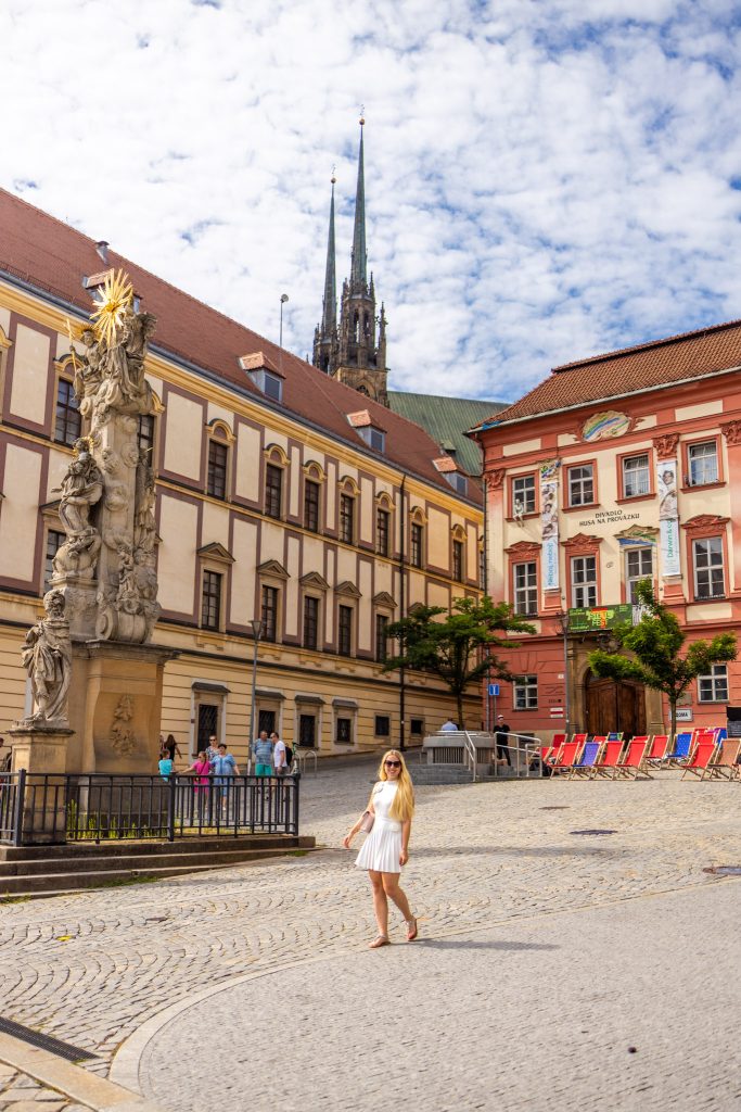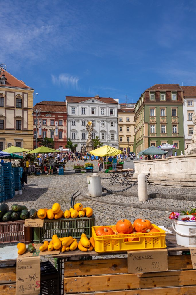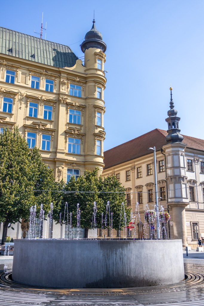 Dieser Platz ist für mich einer der schönsten Brünns. Hier gibt es täglich (außer Sonntag) einen Markt mit frischem Obst, Gemüse und Blumen, und wir sind einfach gemütlich durchgeschlendert. In der Mitte steht ein Brunnen von Johann Bernhard Fischer von Erlach (derselbe Architekt, der in Wien die Karlskirche entworfen hat!). Rundherum findest du schöne Palais, das Theatergebäude und sogar eine Statue von Wolfgang Amadeus Mozart. Was mir besonders gefällt: Überall stehen Liegestühle, man kann sich einfach hinsetzen, die Sonne genießen, dem Treiben zusehen und die besondere Atmosphäre aufnehmen.