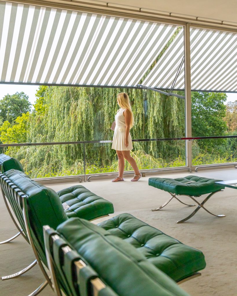 Anschließend ist eine der berühmtesten Sehenswürdigkeiten Brünns auf dem Plan gestanden: die Villa Tugendhat. Sie liegt etwas erhöht mit einem traumhaften Blick über die Stadt und wurde 1929 – 1930 vom deutschen Architekten Ludwig Mies van der Rohe für Greta und Fritz Tugendhat entworfen. Heute gehört sie zum UNESCO-Weltkulturerbe und ist bekannt für ihre klare, moderne Architektur, ihre einzigartige technische Ausstattung und die Verwendung von seltenen Materialien.