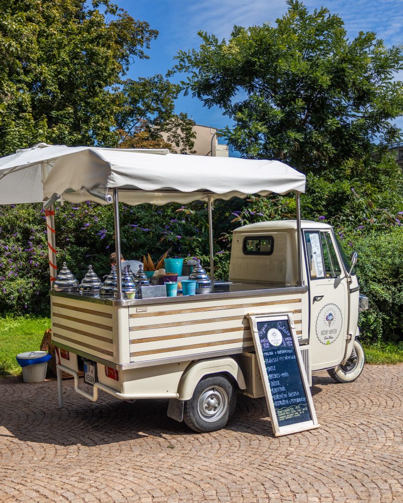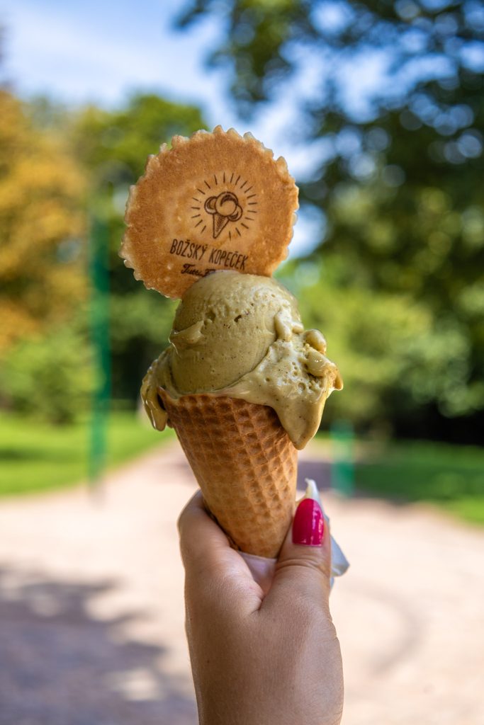 Tipp: Am Ausgang des Parks Ecke Lužánecká/Lidická steht ein Retro-Eistrolley von Božský kopeĉek (übersetzt “Himmlische Eiskugel”) und der Name ist auch wirklich Programm. Das Eis ist vegan und es gibt zum Teil sehr ausgefallene Eissorten (1 Kugel 60 CZK/~2,40 €). Den Eiswägen begegnest du in unterschiedlichen Pastellfarben immer wieder in der Stadt (z.B. auch am Krautmarkt oder Freiheitsplatz).