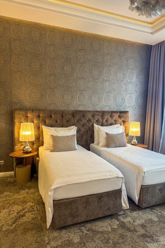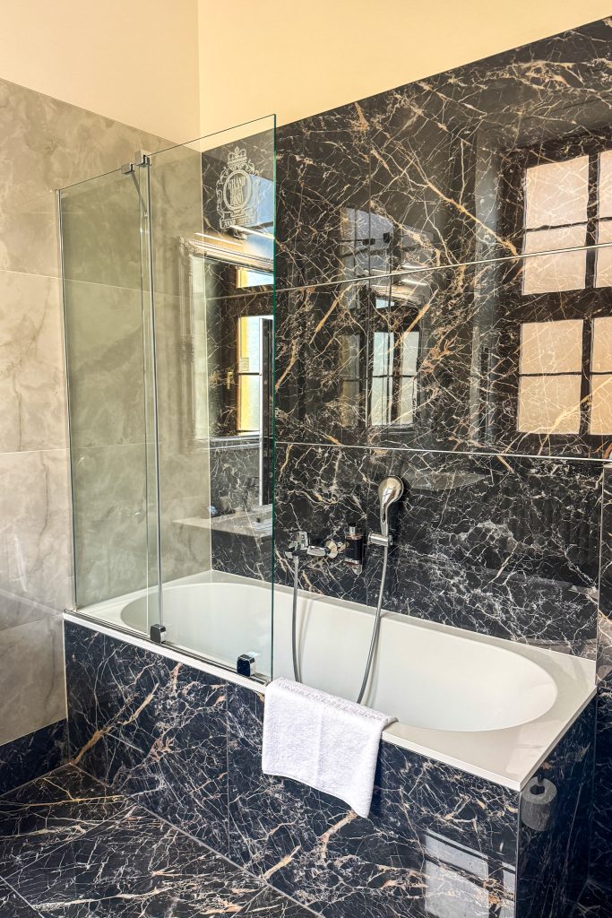Wir haben im Grand Hotel Brno übernachtet, das ich sehr empfehlen kann. Die Lage ist perfekt: nur ein paar Schritte vom Bahnhof entfernt und gleichzeitig in Gehweite zur Altstadt. Außerdem wurde das Hotel komplett renoviert. Wir hatten ein Executive Zimmer, das wunderschön und wirklich groß war und mit eigenem Schreibtisch sowie zwei gemütlichen Polstersesseln ausgestattet war. Auch das Badezimmer war elegant und sehr geräumig. Wegen der schönen Zimmer und der tollen Lage würde ich das Hotel jederzeit wieder buchen.