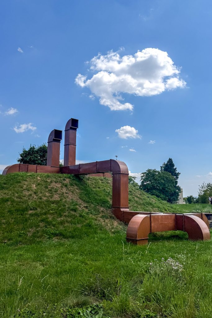 Wenn du in Brünn unterwegs bist, stößt du auch immer wieder auf Installationen des Brno Art Open, einem Festival dass Skulpturen in öffentlichen Plätzen zeigt. In der Gegend um die Wasserspeicher, gibt es einige davon, manchmal auch richtig versteckt und wir haben uns auf unserem Weg zurück ein paar davon angesehen.