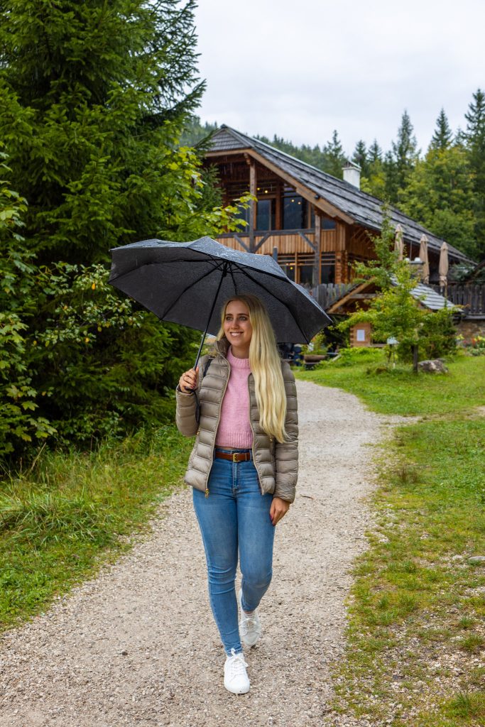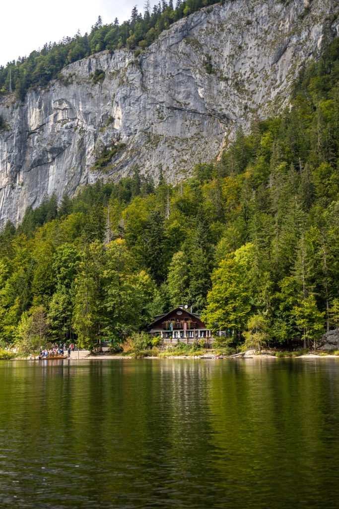 In Gößl angekommen geht es zu Fuß weiter. Je nach Route spazierst du etwa 25 – 35 Minuten bis zum Toplitzsee. Besonders empfehlen kann ich den Rundwanderweg: Er führt zuerst über einen Waldweg, vorbei an der Ranftlmühle, bis zur Fischerhütte am See. Für den Rückweg geht es dann über eine Schotterstraße, vorbei an der imposanten Gößler Wand und charmanten kleinen Häusern entlang des Weges. Ein Spaziergang, den ich dir wirklich ans Herz legen kann.