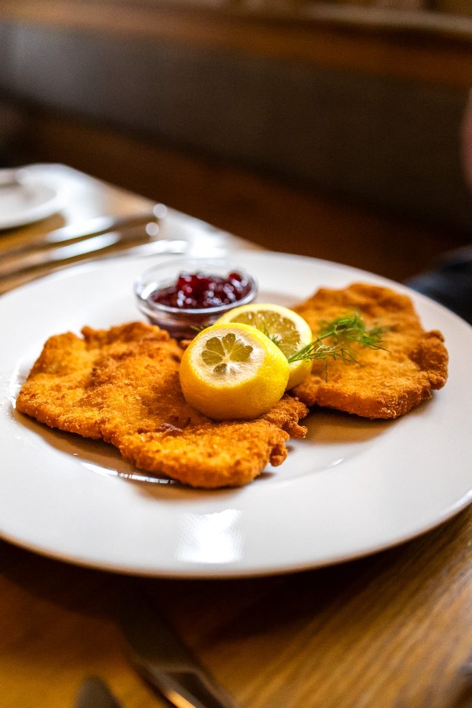 Es gibt eine Terrasse mit schönem Blick auf den See und die Natur, drinnen sitzt man in einer sehr gemütlichen Gaststube. Das Essen war hervorragend. Nachdem ich am Vortag schon den gebratenen Saibling probiert hatte, gab es ihn diesmal als Vorspeise in der Suppe. Danach gab es ein köstliches Beef Tatar mit Ciabatta, und weil man in Österreich damit fast nie falsch liegt, durfte auch ein klassisches Schnitzel nicht fehlen. Alles war wirklich ausgezeichnet.