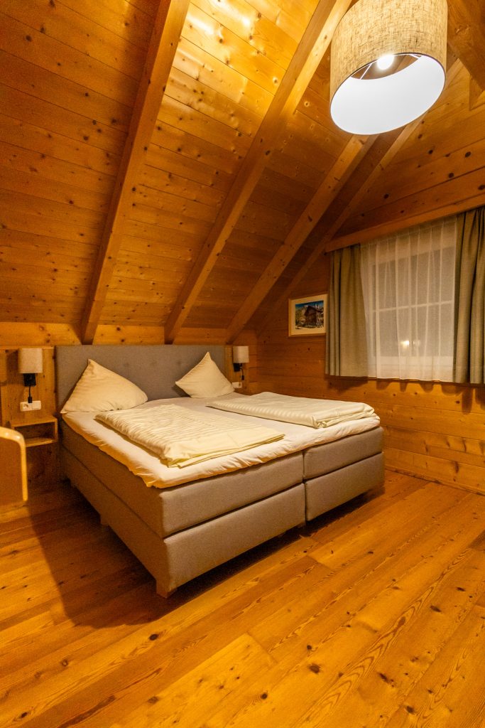 Zum Übernachten kann ich dir die Hagan Lodge in Altaussee empfehlen. Ganz in der Nähe der Talstation der Loser Panoramabahn liegt hier ein Chaletdorf mit gemütlichen Ferienhäusern. Die Lodges sind liebevoll eingerichtet und sehr geräumig: mit kleiner Küche mit allem, was du brauchst, Wohnzimmer und Schlafzimmer(n) im 1. Stock, wir haben uns richtig wohlgefühlt. Am schönsten ist es, in der Früh nach draußen zu gehen und direkt diesen traumhaften Blick auf die Berge zu genießen. So lässt es sich wirklich entspannt in den Tag starten.