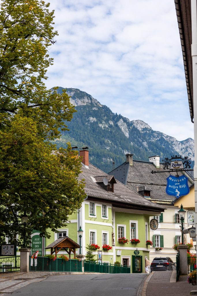 Am nächsten Tag ging es für mich nach Bad Aussee. Die kleine Stadt mit rund 5000 Einwohnern ist nicht nur ein bekannter Kurort sondern hat auch einige Besonderheiten zu bieten. Meinen Spaziergang habe ich entlang der Traun gestartet und ja ich weiß, ich wiederhole mich, aber das Panorama war wieder traumhaft. Danach bin ich durch die Straßen geschlendert, es gibt hier so viele kleine traditionelle Geschäfte und alte Handwerksbetriebe (bei Leithner Hüte stellt man z.B. seit 1532 die Original Ausseer Hüte her).