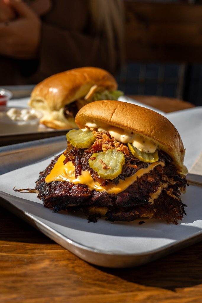For those who love authentic American smash burgers, Smashbox is the place to be. As the name suggests, the burger patties are pressed thinly on the grill to create a unique crust. The famous Martin’s Potato Buns from New York are fluffy and add to the American vibe in Vienna. The Classic Cheeseburger is highly recommended, featuring a double patty of organic beef, cheddar, homemade sauce, and pickles. Simple but good. There’s also a chicken and a halloumi burger on the menu. Fries or coleslaw are must-have sides for an authentic burger spot. I especially recommend the truffle-parmesan mayonnaise.