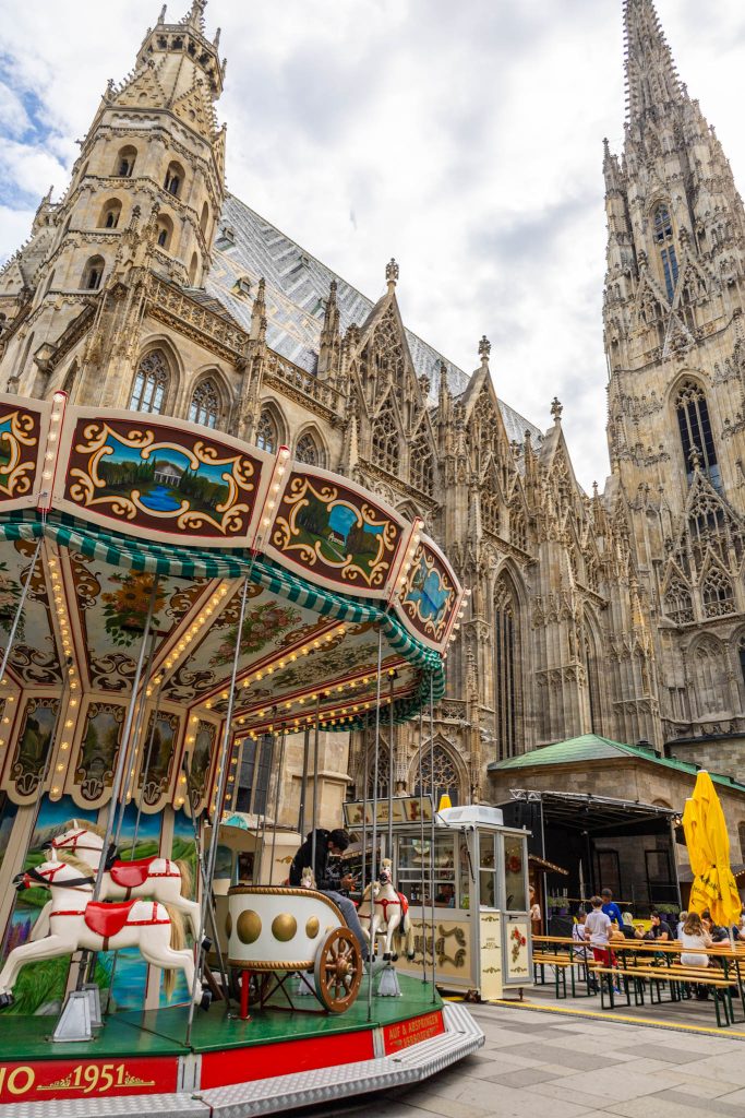 Fair-style market stalls with crafts and food, carousel, program including church services, concerts, and guided tours of St. Stephen’s Cathedral